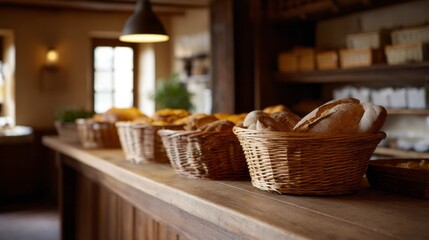 Woven wicker basket with bunches of red and green grapes hanging from it, produce, rustic