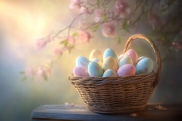 Whimsical fluffy fox holding wicker basket of pastel roses and ribbons on soft plush fur