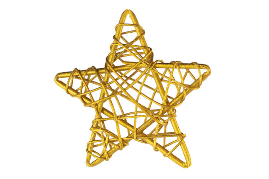 Decorative star of rattan painted in gold, isolate on white