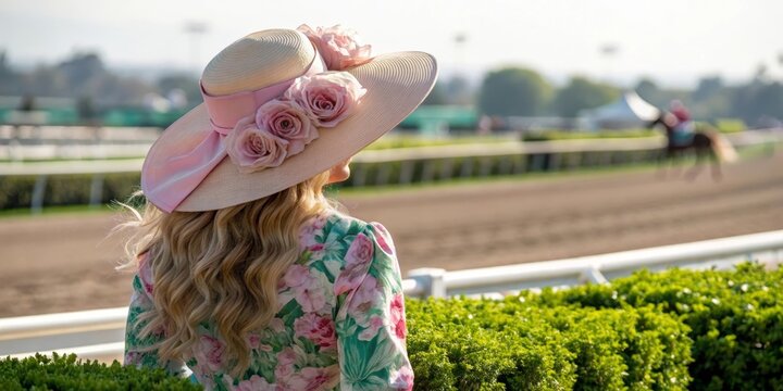 Women's wide brim sun hat with floral accents elegant derby style for race day or garden party event wear