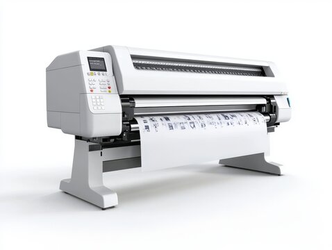 Modern printing press color print machine. Inkjet printer detail close-up. Digital printing technology, paper, textile. Vivid colors, abstract artistic artwork, innovative production process,