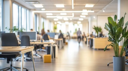 A wide empty concrete square with geometric tile patterns in the foreground, modern glass skyscrapers rising in the background under a clear blue sky.