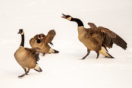 Angry geese in the snow