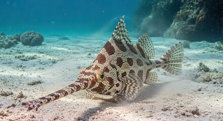 Leafy seadragon on sandy seabed, camouflage expert of the ocean.