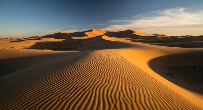 Sand Dune Landscape with Wind Patterns Under Cloudy Sky