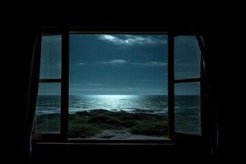 Sea scape window night nature.