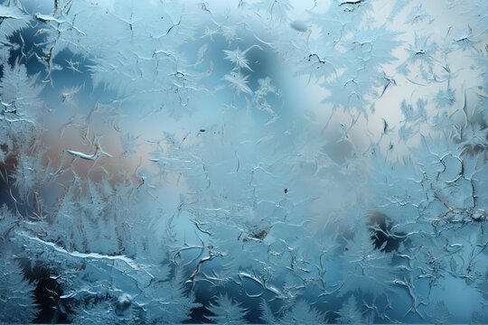 Delicate frost patterns forming beautiful designs on a cold window pane