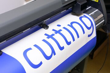 Cutting plotter close-up. The process of cutting a vinyl film.