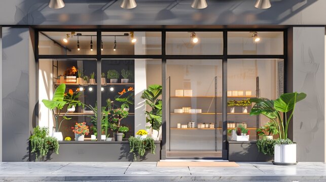 A professional company storefront showcasing prominent branding elements, with a sleek office entrance characterized by modern design and prominently displayed corporate logos