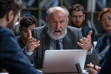 Active Senior business man in Modern Office Environment, morning tense meeting with colleagues