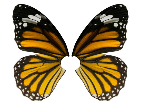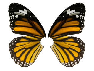 Butterfly wing isolated on white background, common tiger butterfly , Danaus Genutia, monarch butterfly, File contains a clipping path