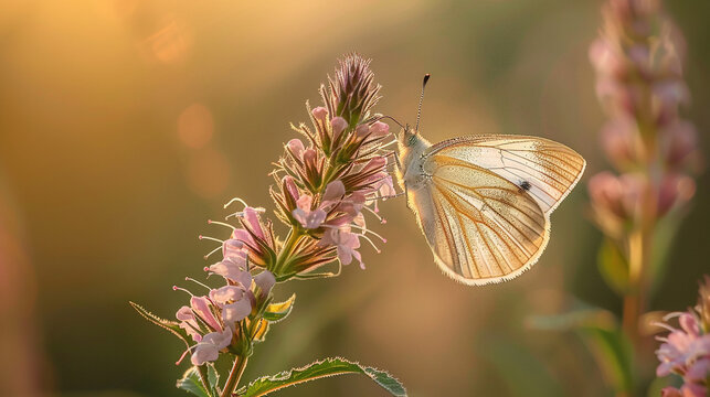 Close-up of radiant butterfly wing illuminated by warm sunset