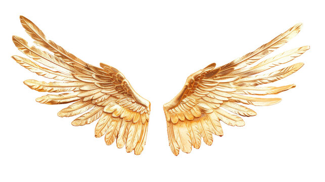Beautiful fantasy gold angel wings isolated on white background