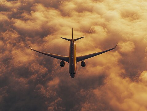 Modern Passenger Jet Aircraft Soaring Through the Sky Above the Clouds