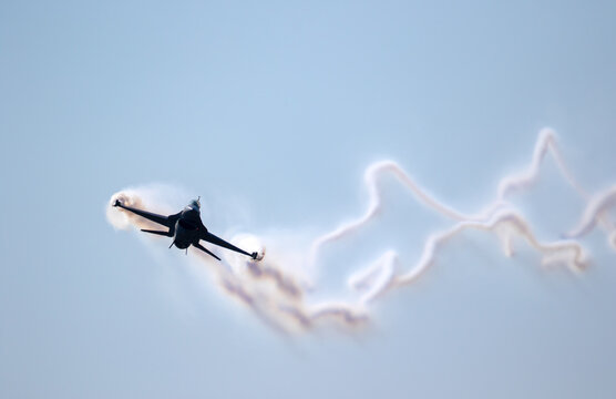 Thrilling f16 fighter jet maneuver amid exploding clouds