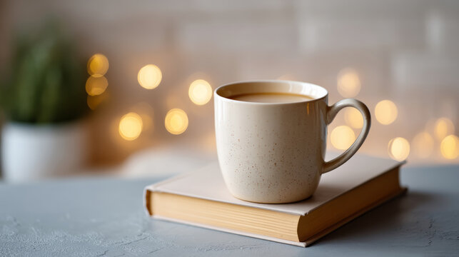 Contemporary workspace with mug and creative decor