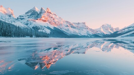 Majestic snowy mountain reflection
