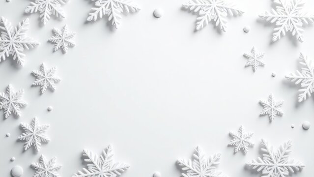 Silver snowflake frame creating elegant blank winter holiday greeting background