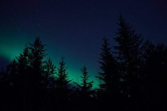 aurora borealis northern light on winter night sky over trees