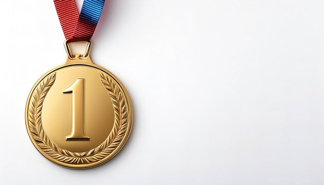 Gold 1st place medal. isolated on white background with copy space.  Top place finisher in a race, marathon or Olympic competition event