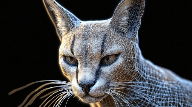 Geometric Wireframe Wolf with Glowing Particles - Cyberpunk Animal Art