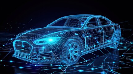 Futuristic illustration of a wireframe car with digital technology and innovation