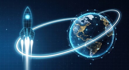 Four glowing spherical maps with wireframe continents floating in dark space