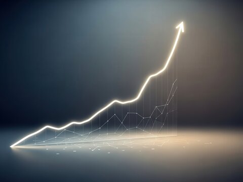 Glowing route over reflective surface linked by digital points