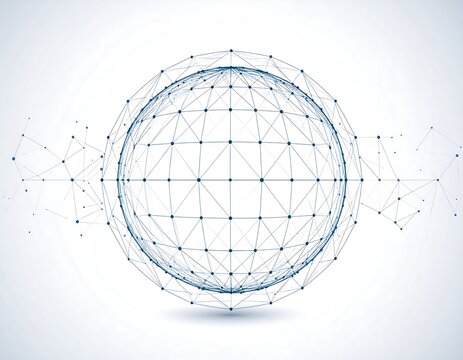 Futuristic wireframe sphere glowing in navy digital space