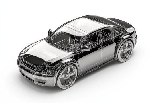 Modern automotive design rendered in transparent wireframe showcasing engineering details isolated on transparent background