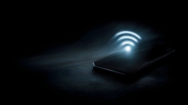 Glowing Wi Fi symbol radiating from a dark smartphone symbolizing digital connection and modern technology in the night