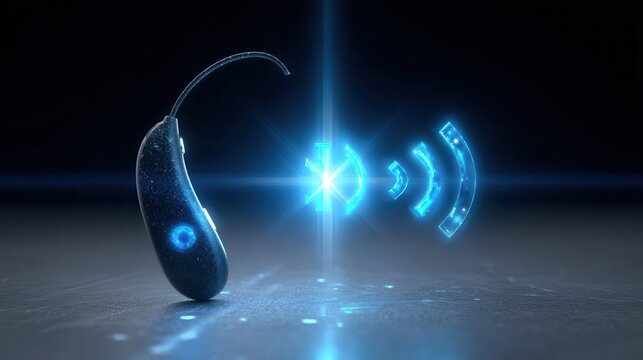 Modern hearing aid with wireless technology.