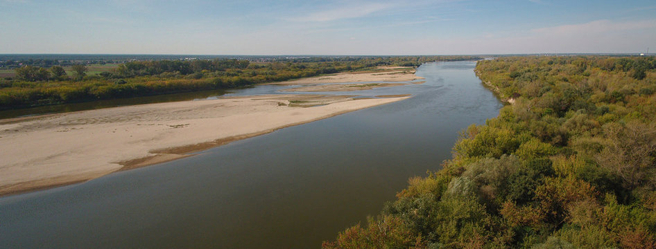 The lazy and calm Vistula flowing through Kazimierz Dolny on a beautiful summer day.