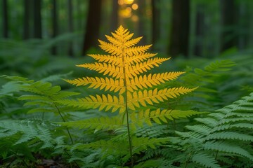 Fern bush in the forest, on a green background, close-up. Concept: plant, nature