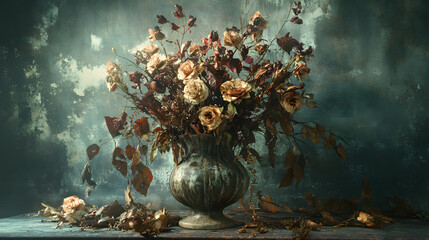 Withered flowers isolated on white background. Withered chrysanthemums. Withered eustoma. Bouquet of withered flowers.
