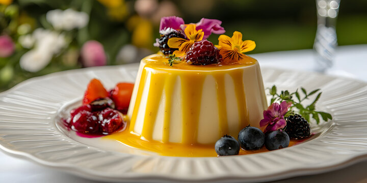 Delicious Panna Cotta, boasting a creamy and smooth composition that wobbles gently in its elegant mold.