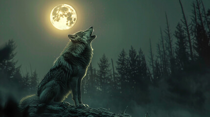 wolf howling at night