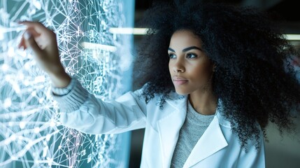 Woman Scientist Engaging with Digital Interface in High-Tech Laboratory Environment