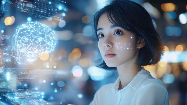 Woman Exploring Digital Network: Futuristic Technology and Connectivity
