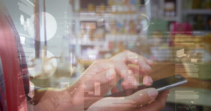 Data analysis action by professional woman tech lab digital interface modern environment profile view innovation insights