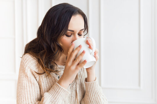 Young pretty woman drinking coffee in the morning