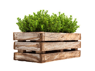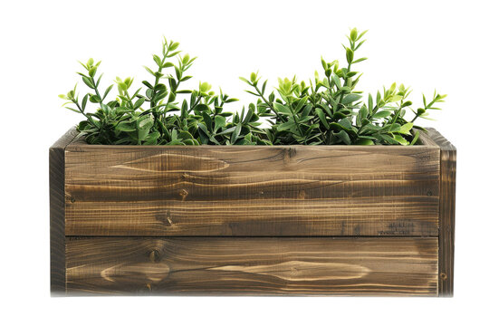 A rustic wooden planter box adorned with lush green plants, bringing a touch of nature indoors in a cozy space isolated on transparent background