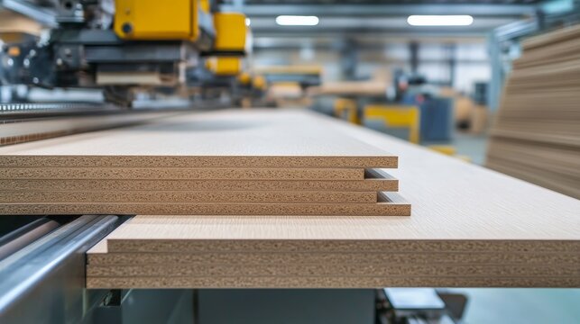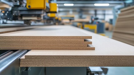 Wood boards on a woodworking machine in a modern furniture factory