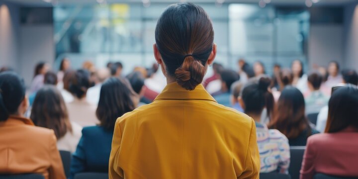 Female executive guides hybrid meeting, diverse team. In-person, virtual communication blend, dynamic work environment. Pro presentation, coaching, modern workplace tech solutions showcase
