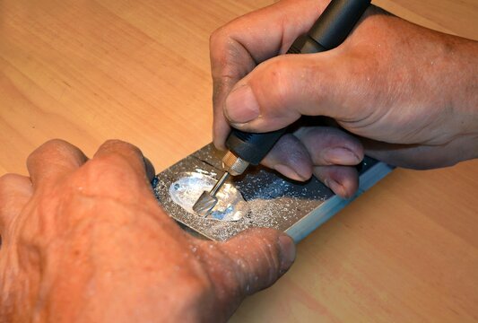 A man sculpts a metal casting mold with a manual milling machine