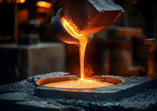 Molten metal flowing from a furnace in a manufacturing facility showcasing industrial processes and craftsmanship