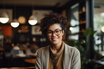portrait, business, businesswoman, office, opportunity, co-worker, working space, leadership, smile, elegance. portrait image is close up businesswoman at working space. behind have office asset.