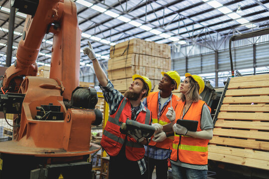 Engineer, Workers in a busy warehouse engage in various tasks, showcasing a collaborative team effort in an industrial setting, with a focus on safety and efficient work practices