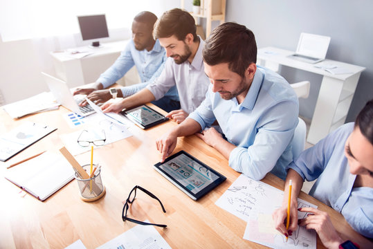 Relaxed businessman enjoying diverse workplace