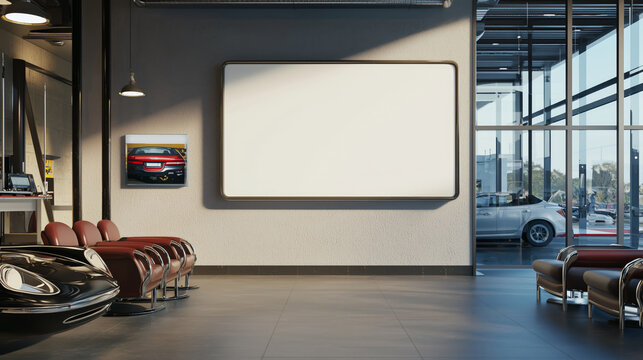 Auto Repair Shop with Mechanics at Work and Customers in Waiting Area
